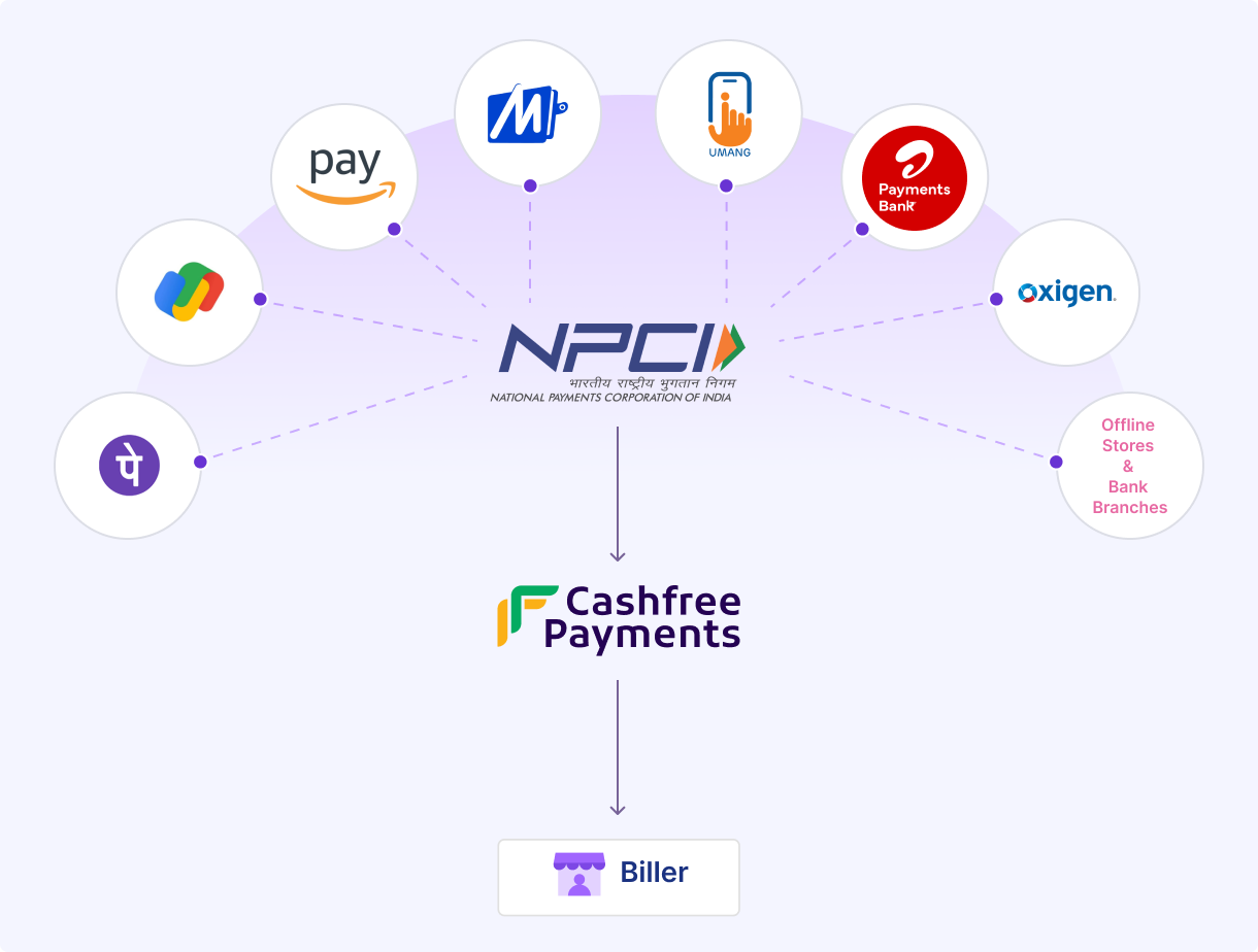 Cashfree’s Biller solution for BBPS helps you collect bills from all major UPI apps like Paytm, PhonePe, Google Pay, and more with a single integration that connects you to the BBPS network. You can start the integration process with the following steps: