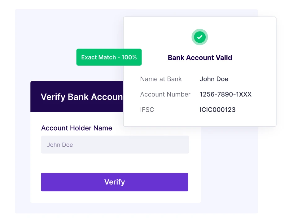 Verification Suite by Cashfree Payments helps businesses verify their beneficiaries immediately. With Verification Suite you can verify Bank account details, PAN, Aadhaar and GSTIN all under one dashboard. With Bank Account Verification you can match the name provided by the user with the account holder’s name registered at the bank to avoid any chances of fraud. It gives businesses a way to simplify their onboarding process. You can also automate the complete verification process with our powerful APIs and webhooks that can be easily integrated with your existing products to provide your customers with an enhanced experience!