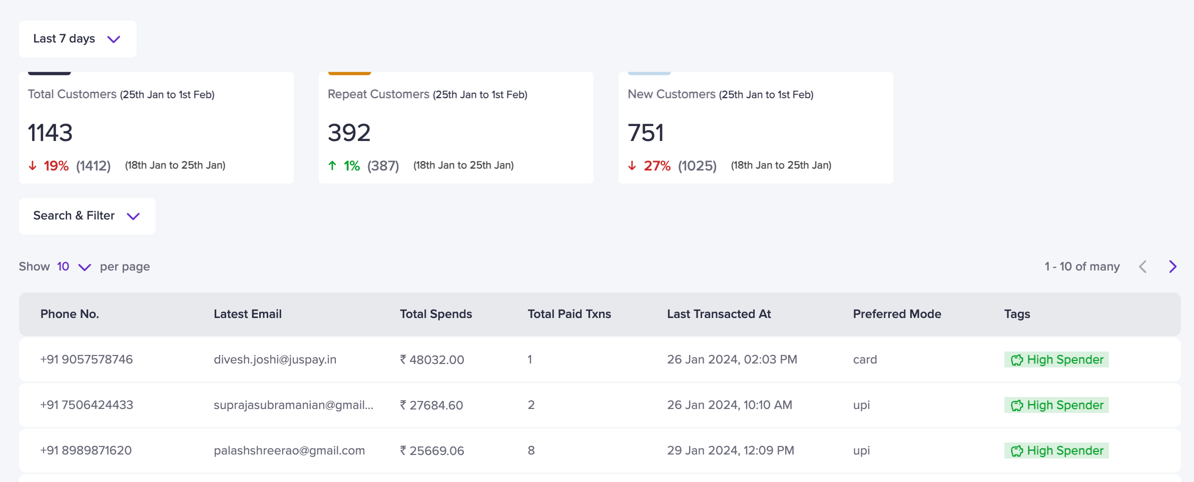 In the example shown above, Maharashtra contributed the highest transaction volume with 13,741 successful transactions. Delhi, Gujarat, Uttar Pradesh, and West Bengal each recorded five successful transactions, while Karnataka recorded four successful transactions during the same period. Use these insights to identify high-performing regions, optimise marketing spend, and understand customer behaviour across geographies.