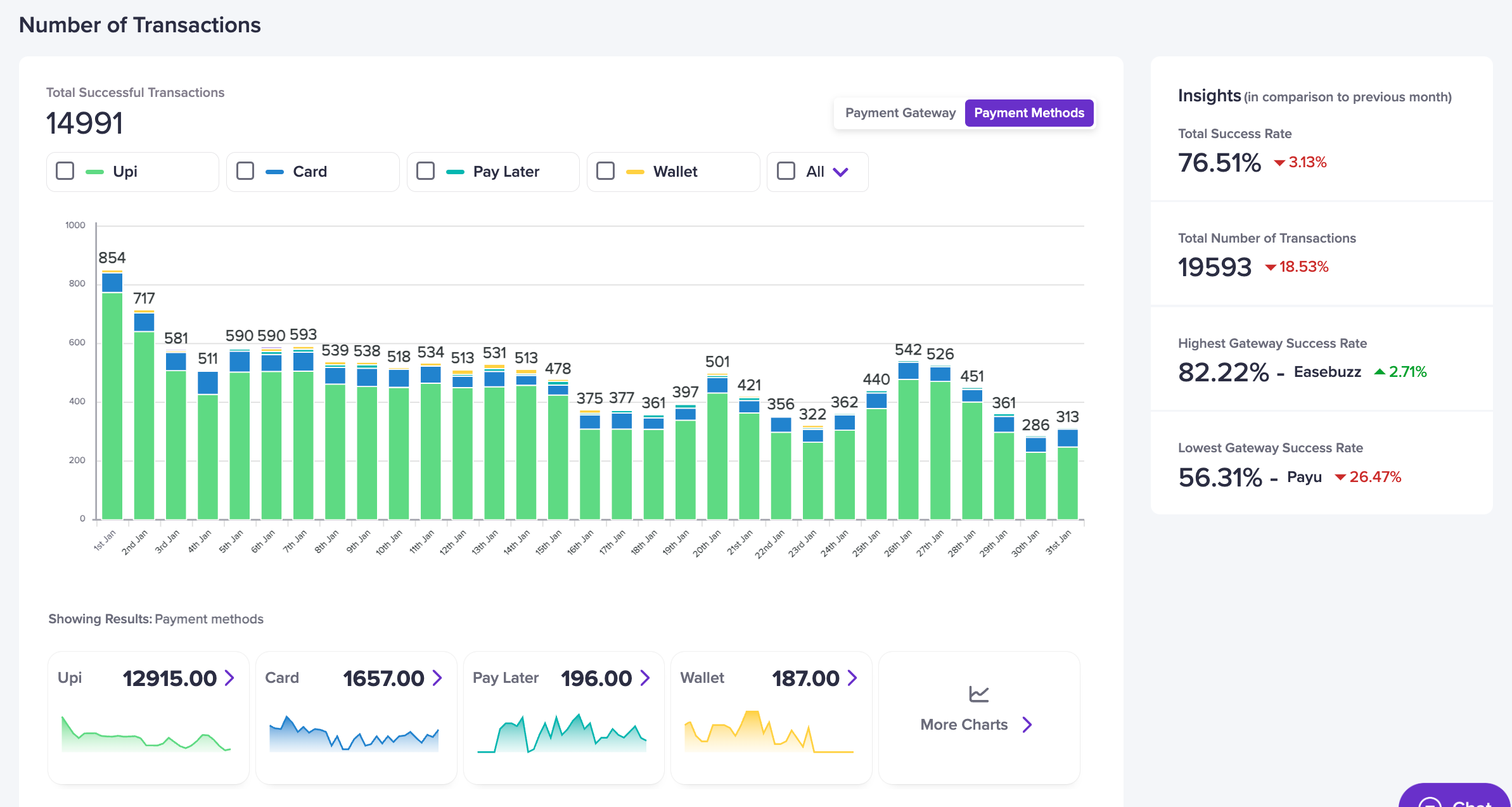 Understand which payment types your customers prefer, for example, UPI or wallet.
