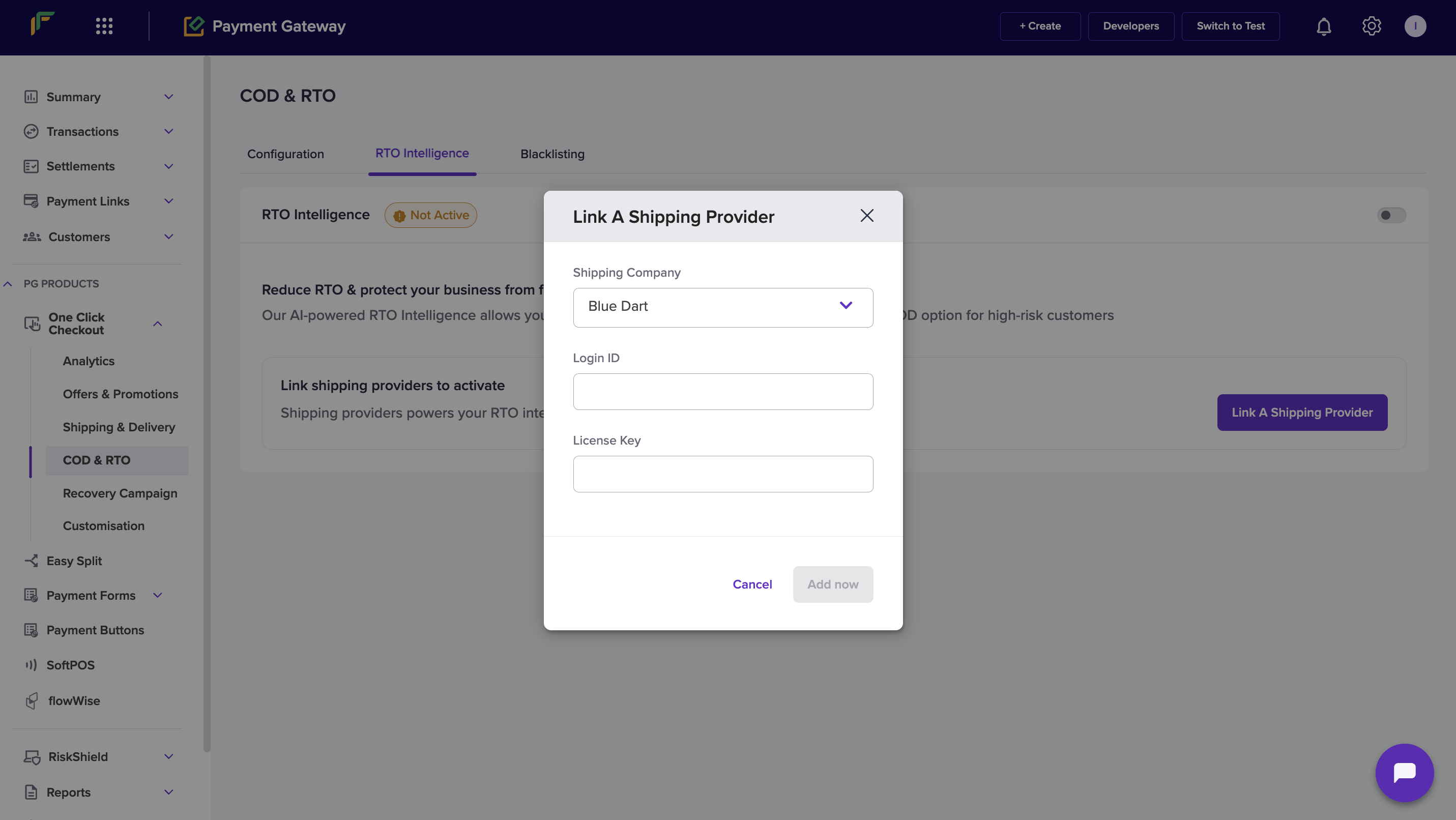 To activate RTO Intelligence:- Log in to the Merchant Dashboard.