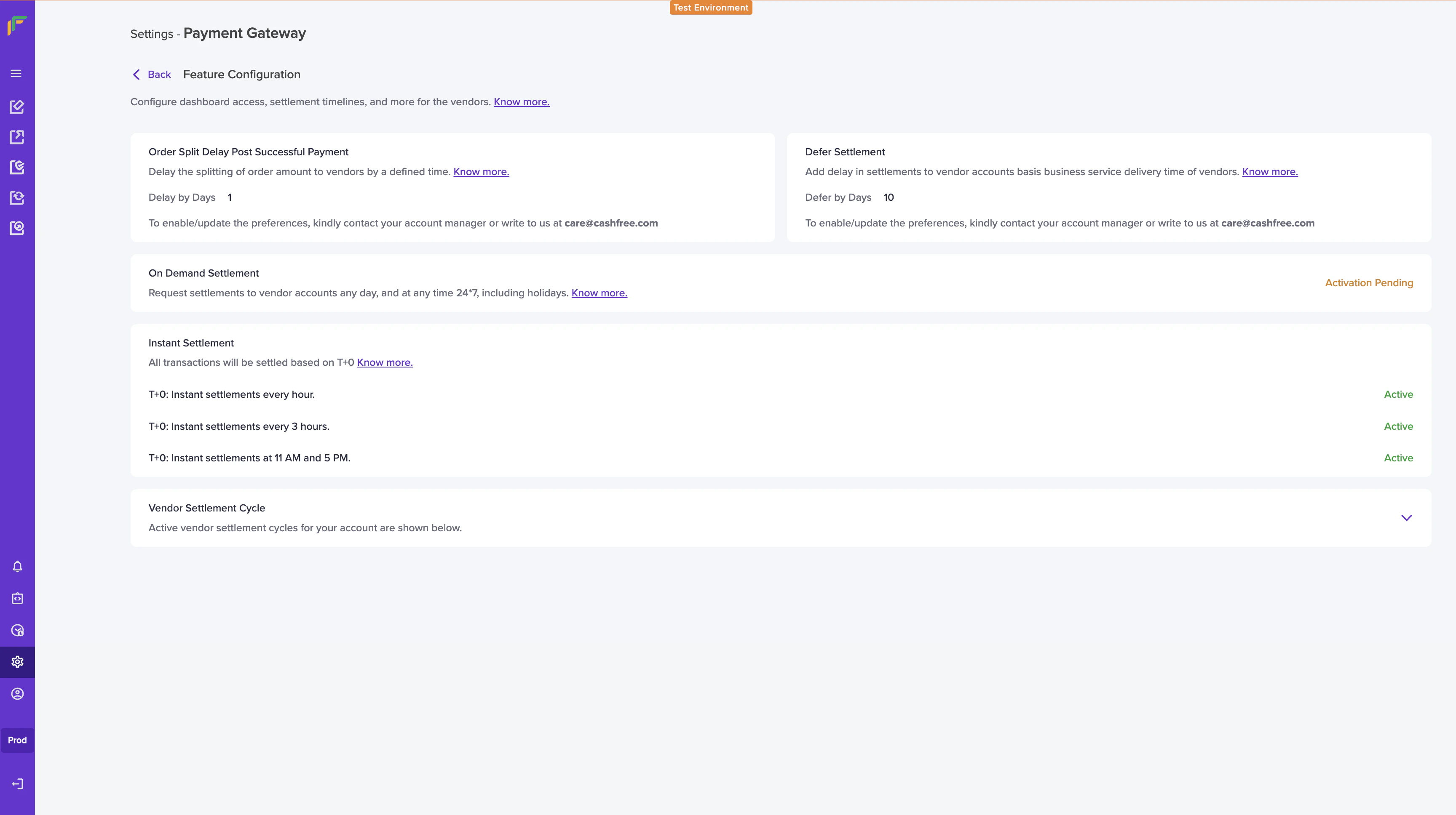 You can defer overall order settlements to your vendors by increasing the order split delay. By default, we support a split delay of T+1* days (after successful payments) within which you have to specify the split details along with the vendor ID to process split settlements to your vendors.Documentation Index